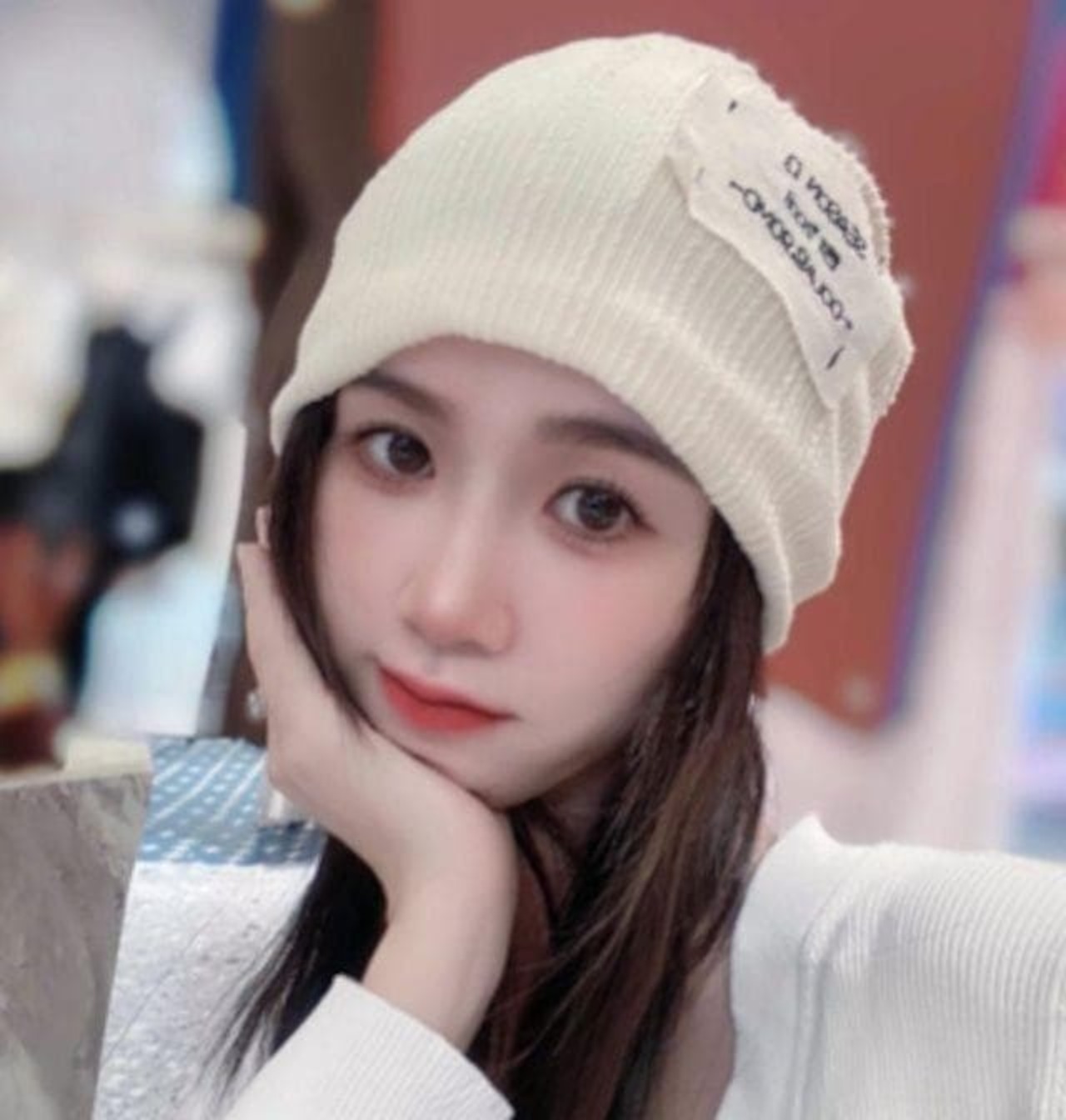 新品 レディース ロゴ 伸縮性あり 韓国系 お髭 ニット帽 キャップ ホワイト