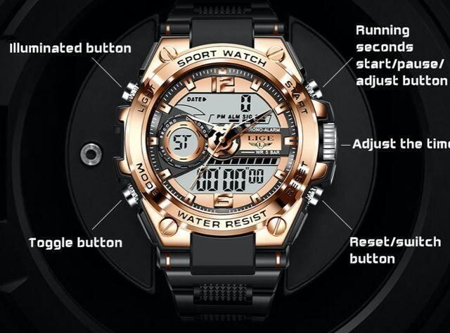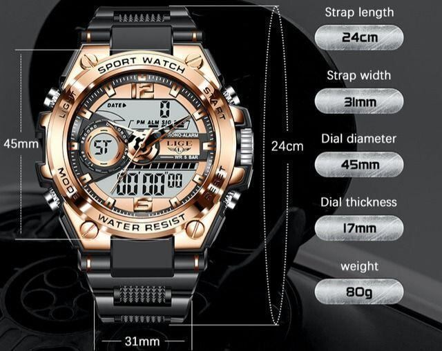 箱付き 海外限定 LIGE 高級感 抜群 シルバー デジタル 腕時計 メンズ