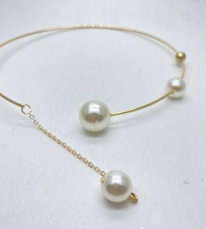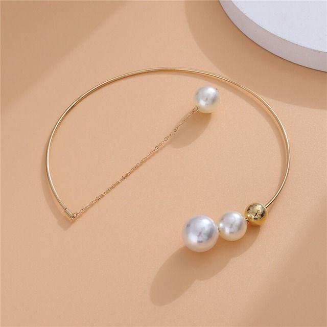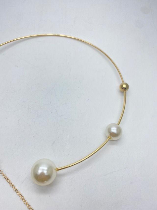 大粒パールやゴールドチェーンがオシャレなネックレスです。