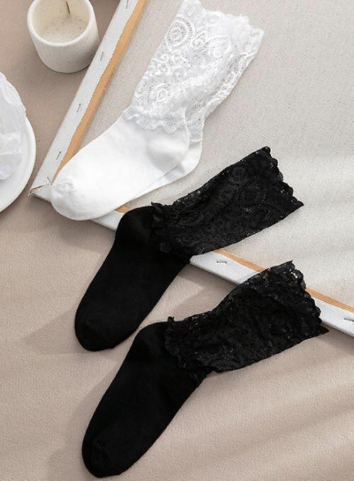 【2足セット】デザイン ソックス 可愛い オシャレ 靴下 シースルー 白