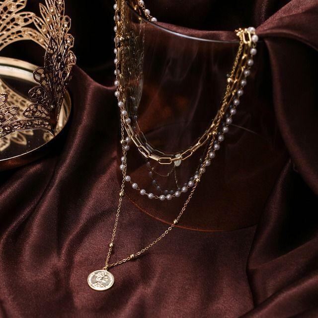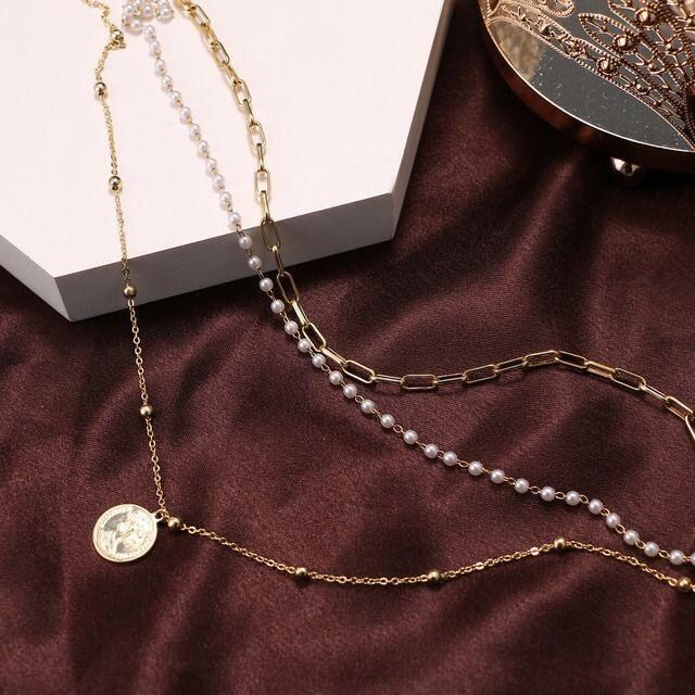 新作☆お洒落 メタル パール ネックレス ☆レディース ファッション