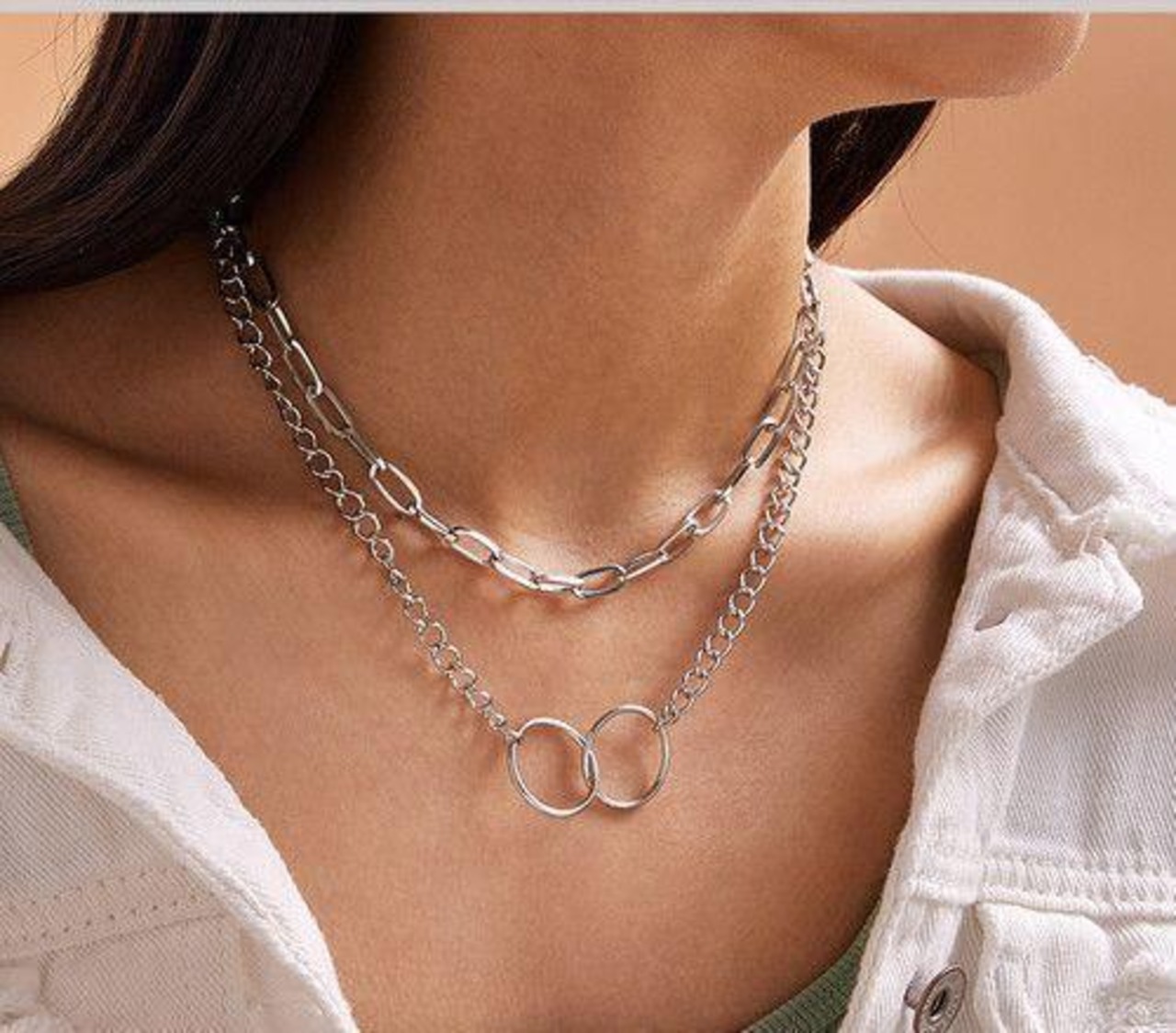 新作☆お洒落 円形 シルバー ネックレス ☆レディース ファッション