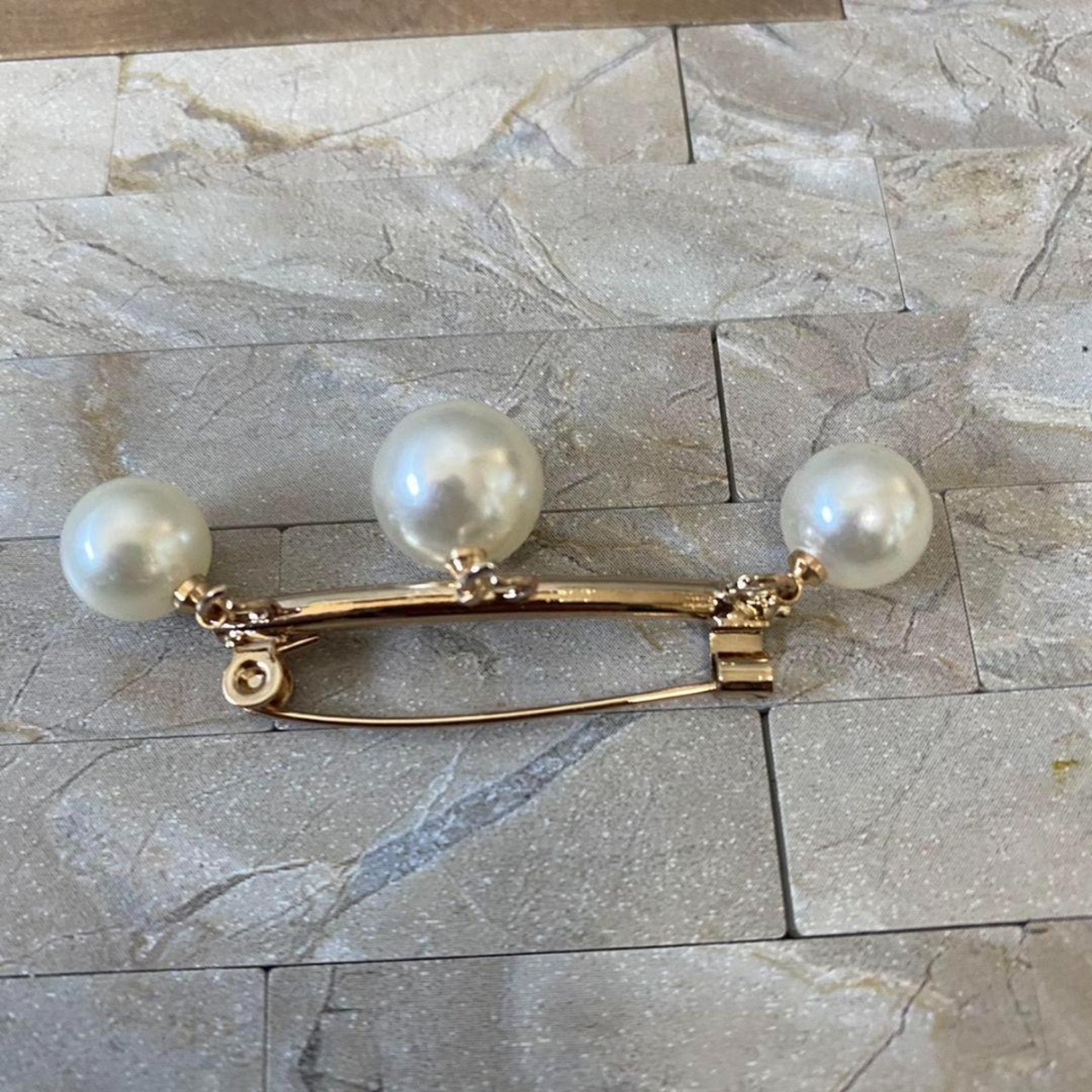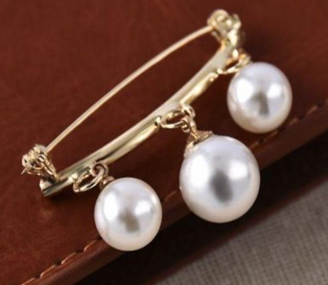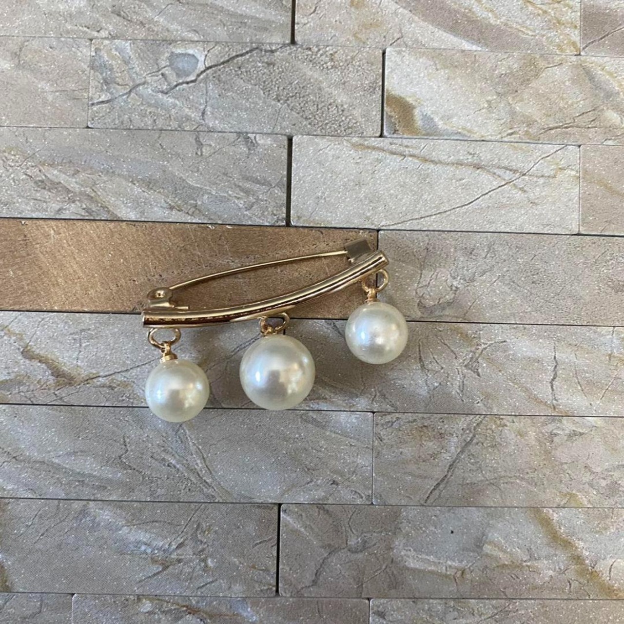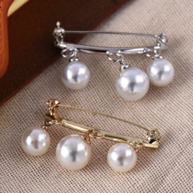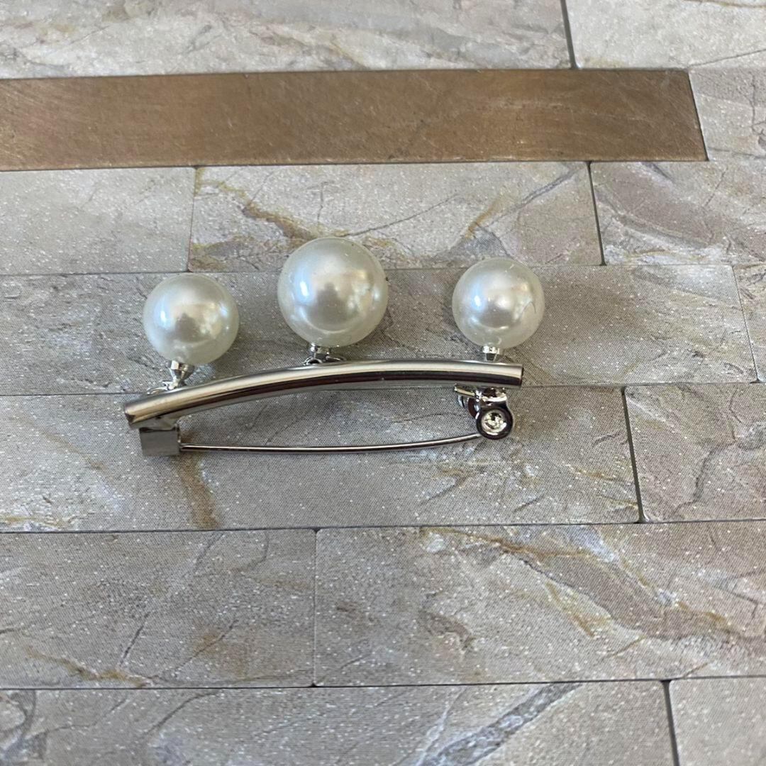 2個セット ゴールド シルバー 大粒3連パール ブローチ