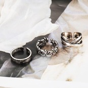 新品 3個セット 指輪 シルバー銀 韓国 レトロ 男女兼用 フリーサイズ