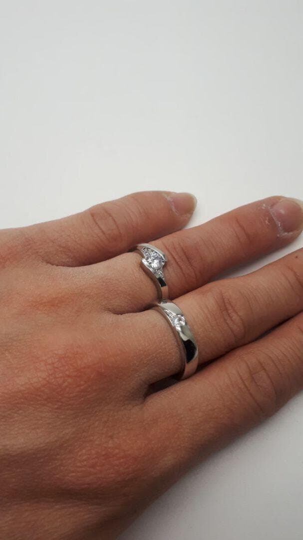 ☆即日発送☆2個セット シルバー☆大粒ジルコニア☆ペアリング フリーサイズ