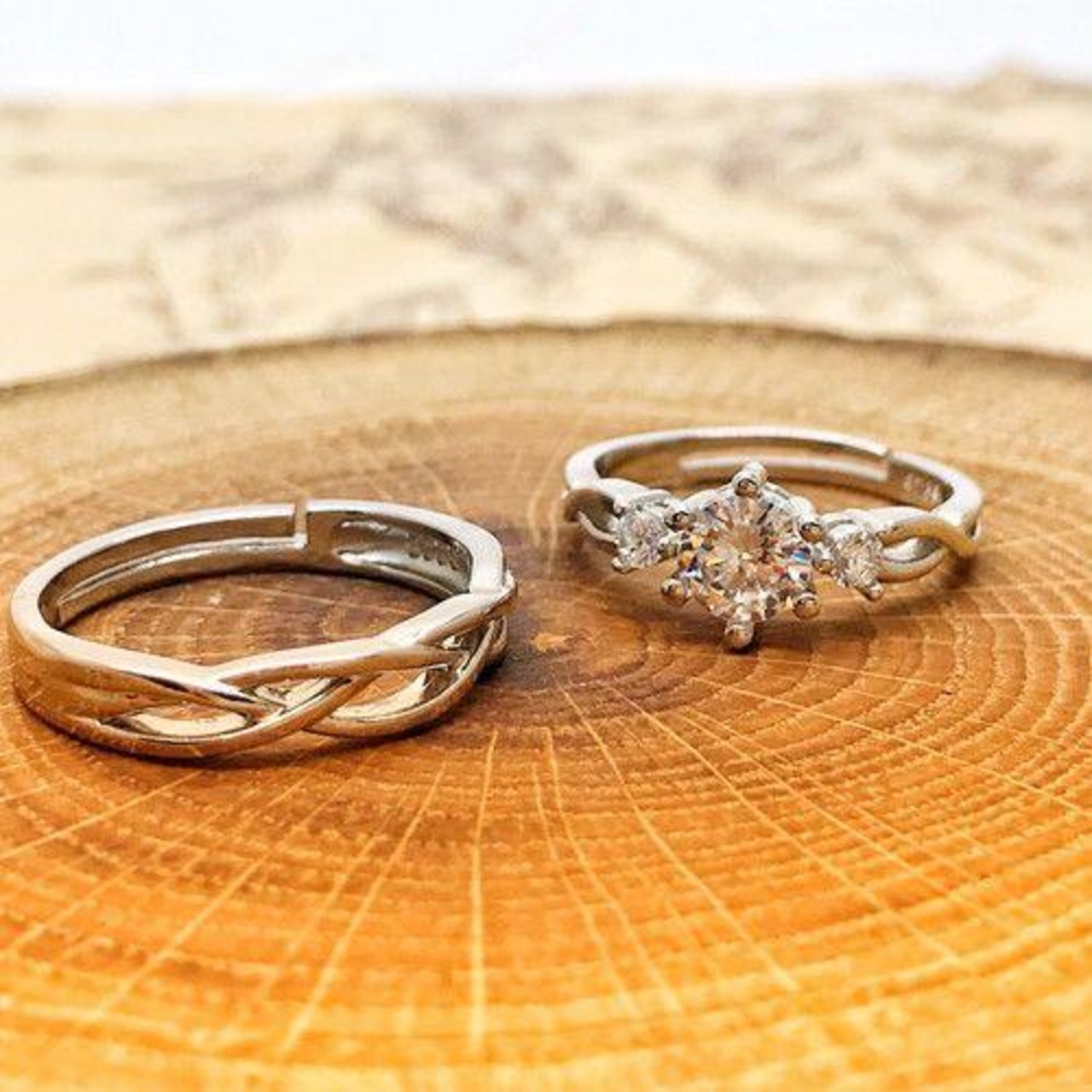 即日発送☆2個セット☆シルバー☆編み込み☆ペアリング フリーサイズH