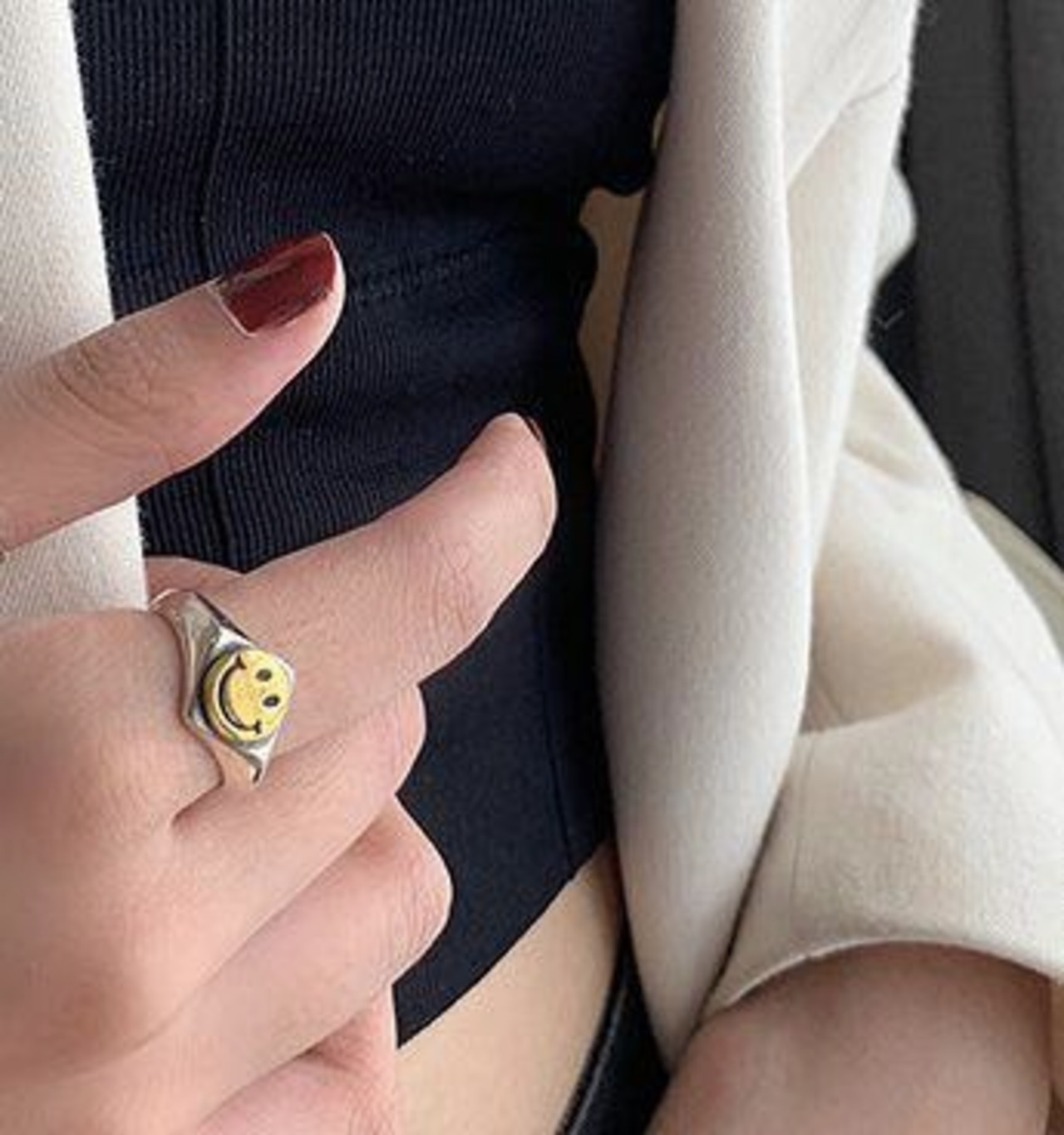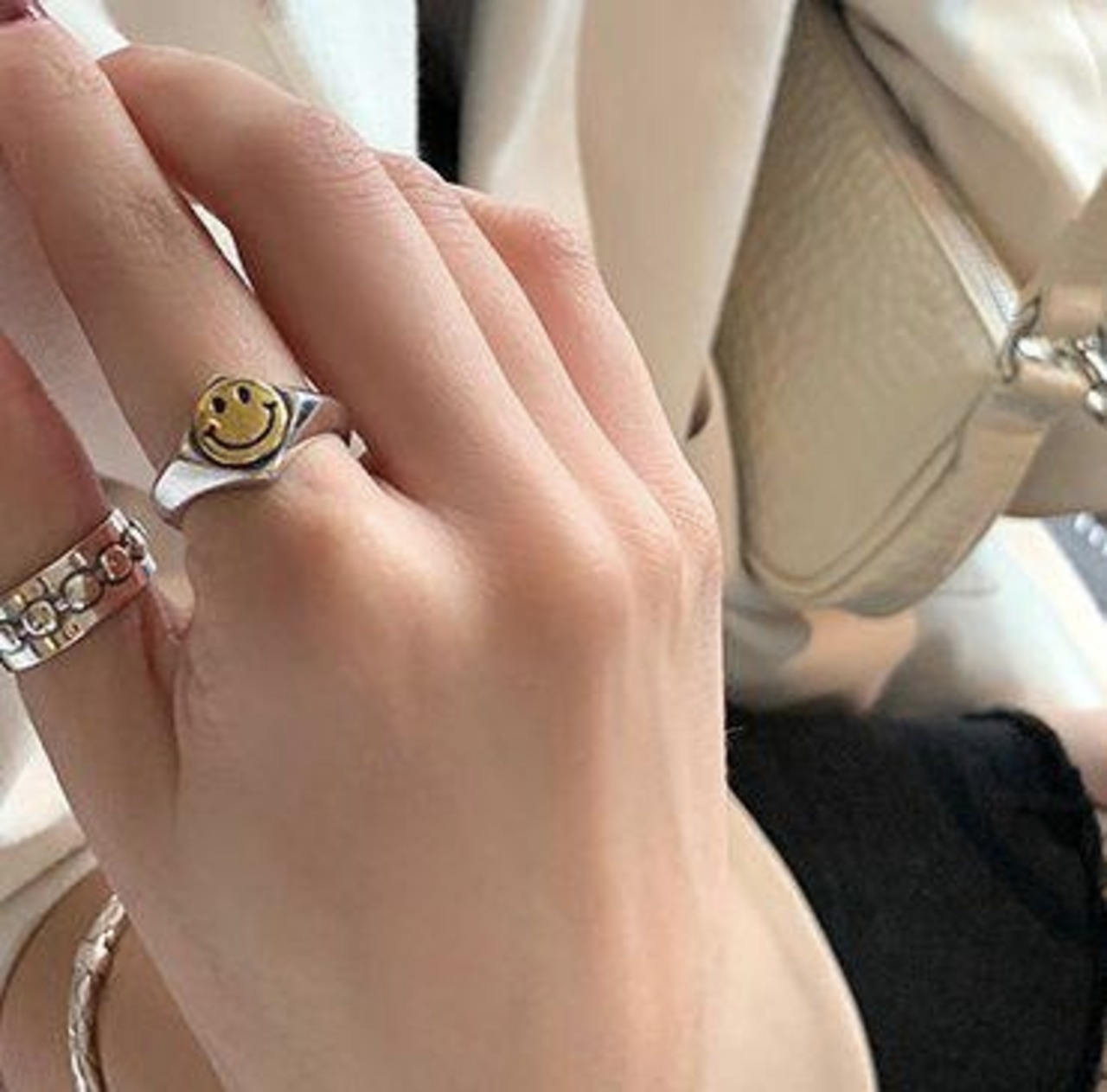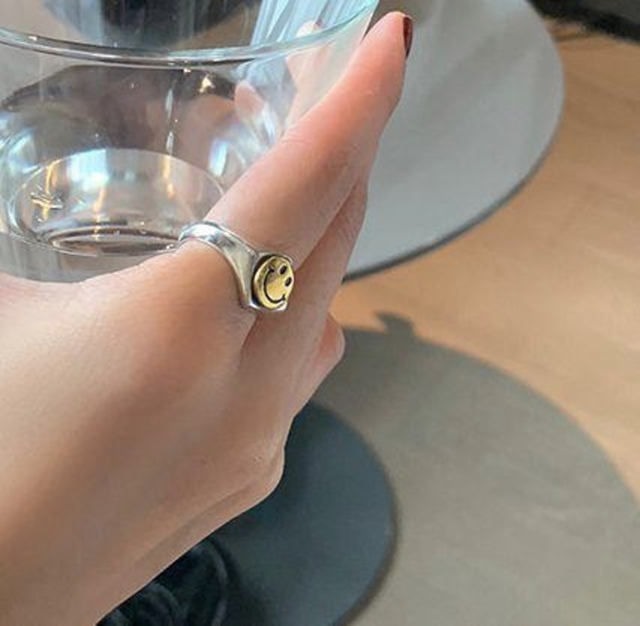 新作☆2個セット ニコちゃん スマイル 指輪☆ペアリング 韓国