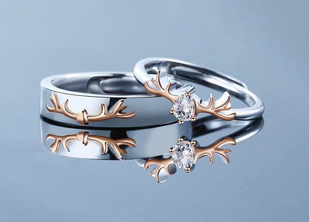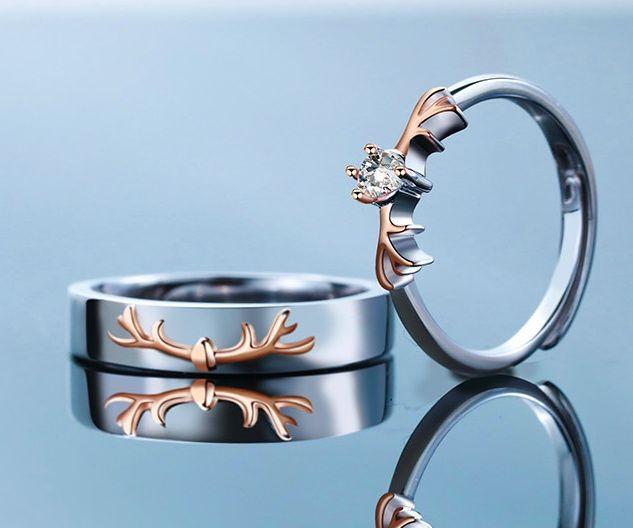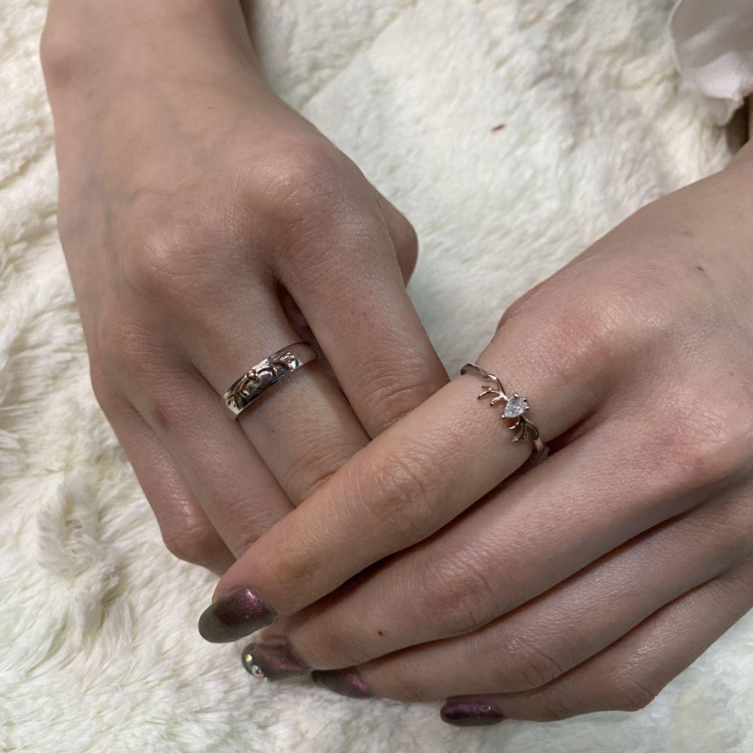 鹿モチーフの指輪☆2個セット☆シルバー☆ジルコニア☆ペアリング