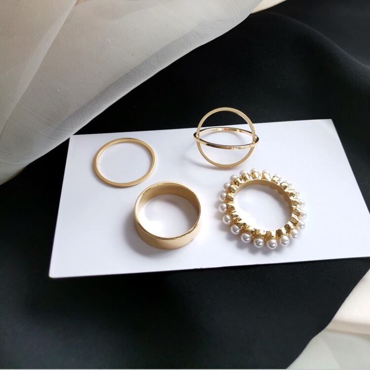 新作 パール セットリング 指輪 4個セット ラグジュアリー ゴールド