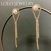 【大特価】韓国デザイン☆クリスタル ロング パール ピアス