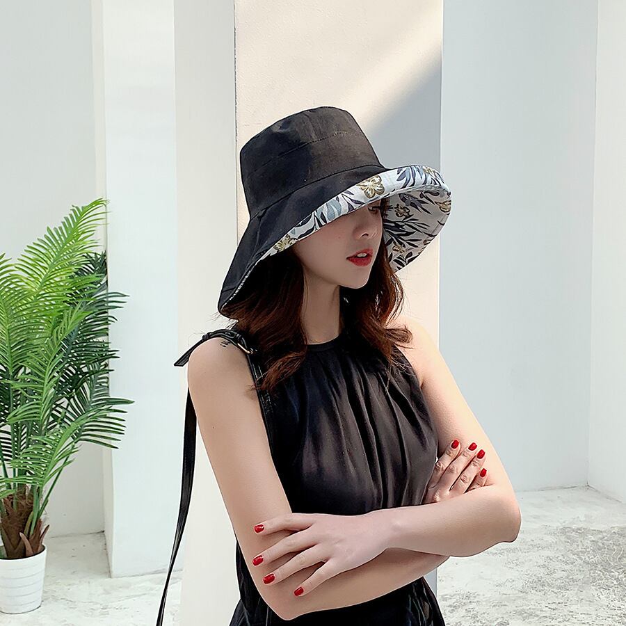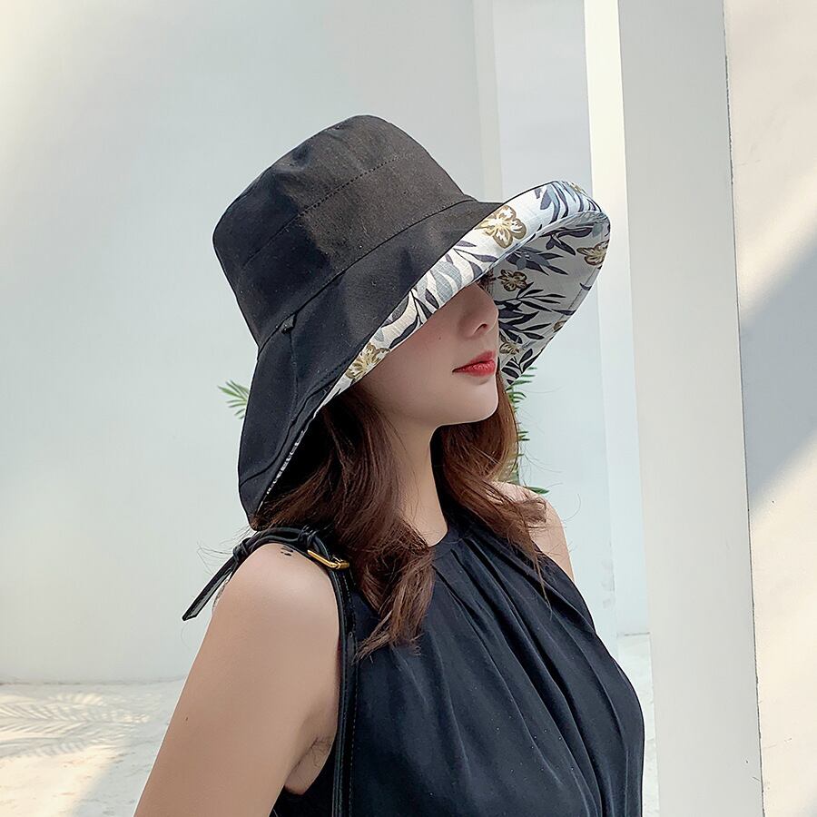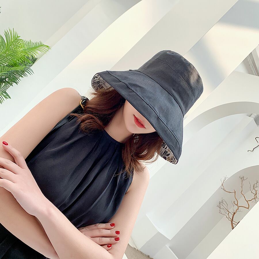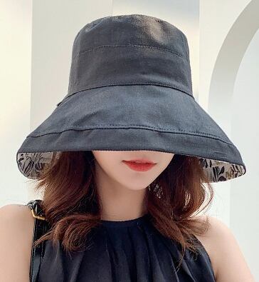 【リバーシブル】UVカット ツバ広帽子 日除け キャップ レディース 黒色