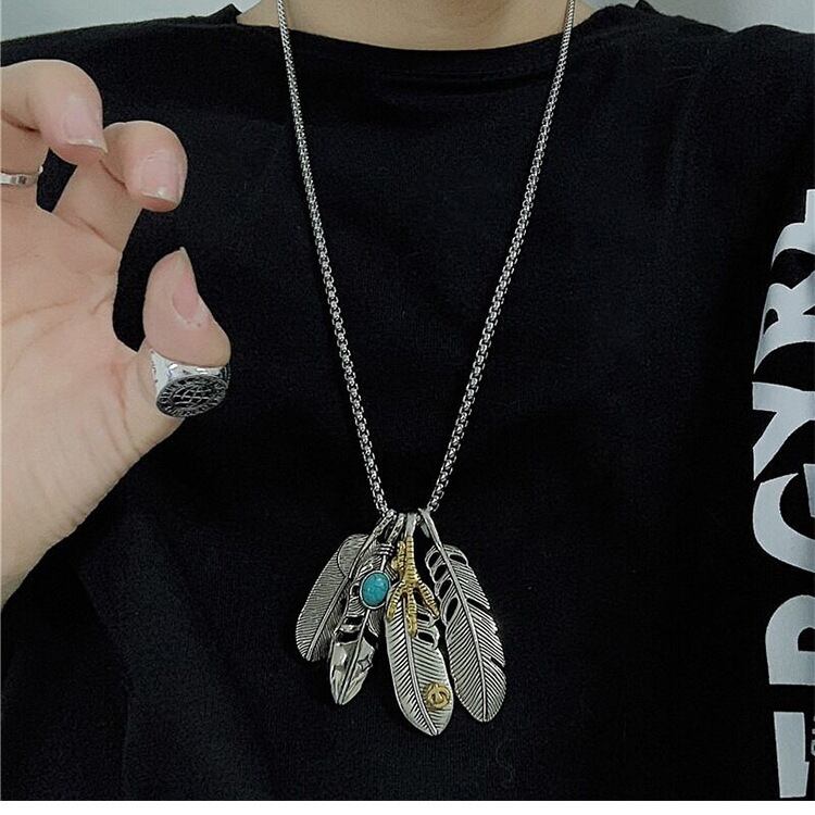 最安値☆大ヒット商品☆ターコイズ フェザー ネックレス 4個セット シルバー