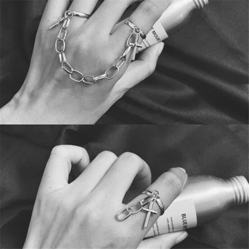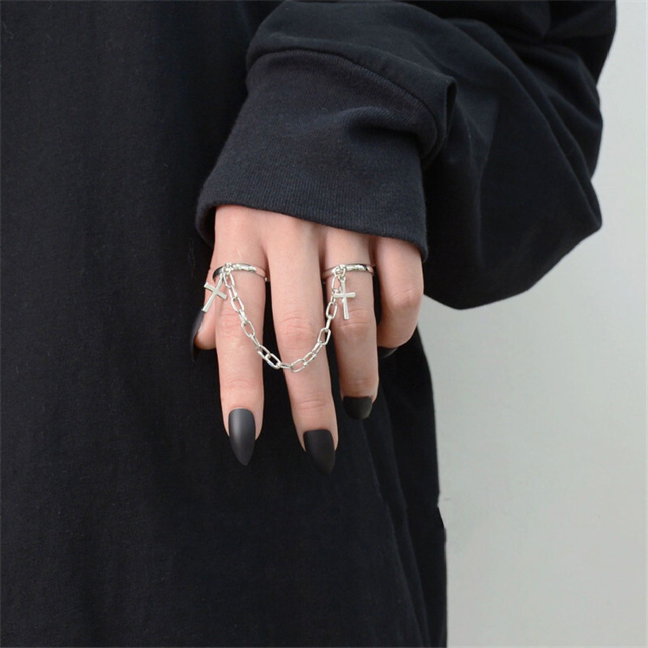 73新作 シルバー 男女兼用 オルチャン ダブル クロス トレンド リング
