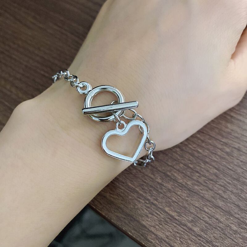 75新作 シルバー オルチャン ハート トレンド ブレスレット 男女兼用