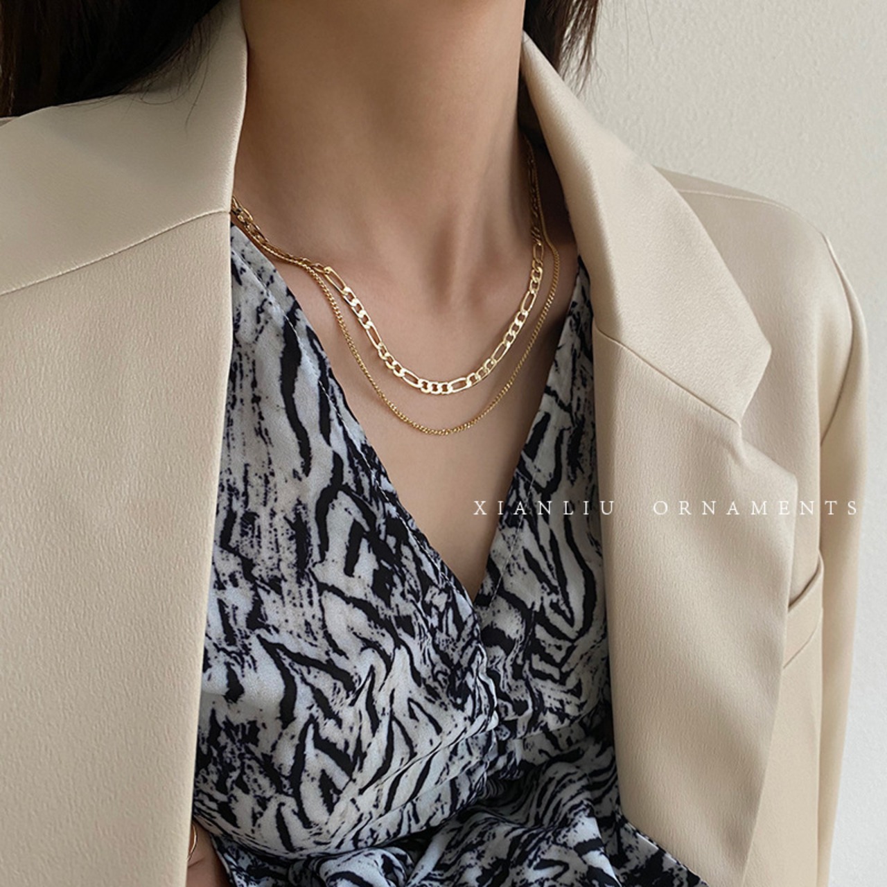 81新作☆お洒落 2連 ゴールド ネックレス ☆レディース ファッション 男女兼用