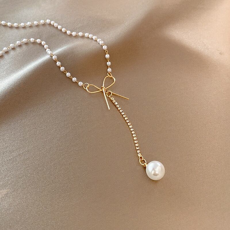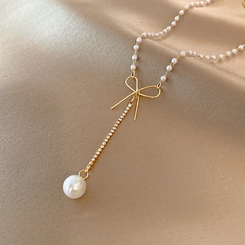 95新作☆お洒落 リボン パール ネックレス ☆レディース ファッション