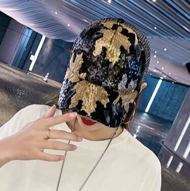 344【新作アイテム】☆奇抜 ゴールド ブラック 男女兼用 キラキラ キャップ 帽子