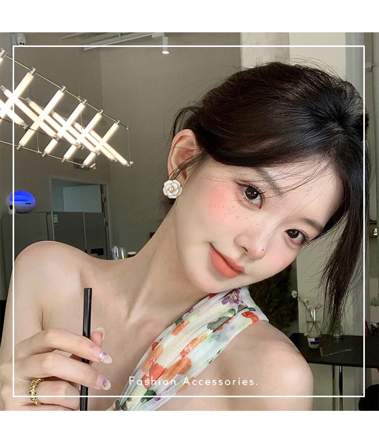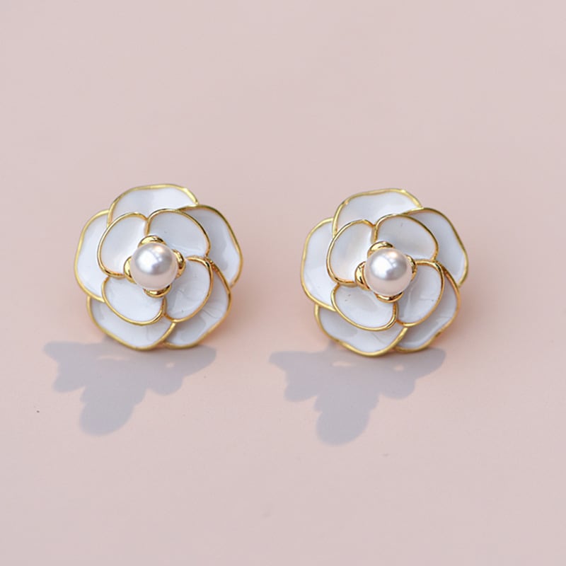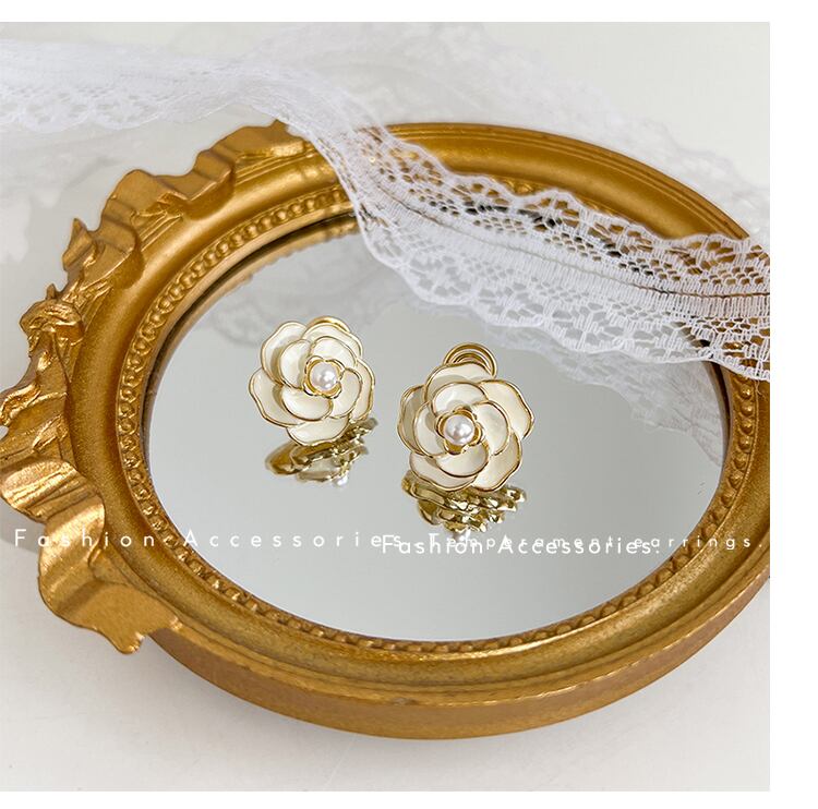 新作☆ヒット商品☆カメリア ピアス レディース 白色 アクセサリー☆韓国 k-pop
