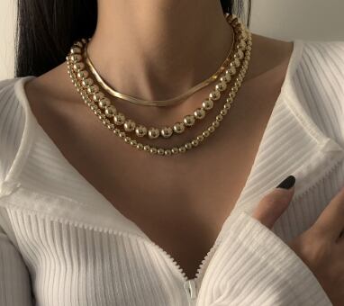 778【新作】3点セット☆大粒 ロング ゴールド パールネックレス 結婚式 ウエディング☆